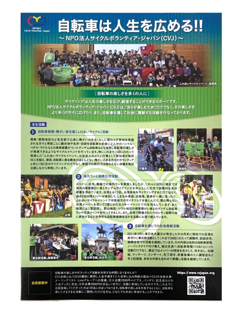 CVJ サイクルボランティアジャパンのチラシが出来ました。